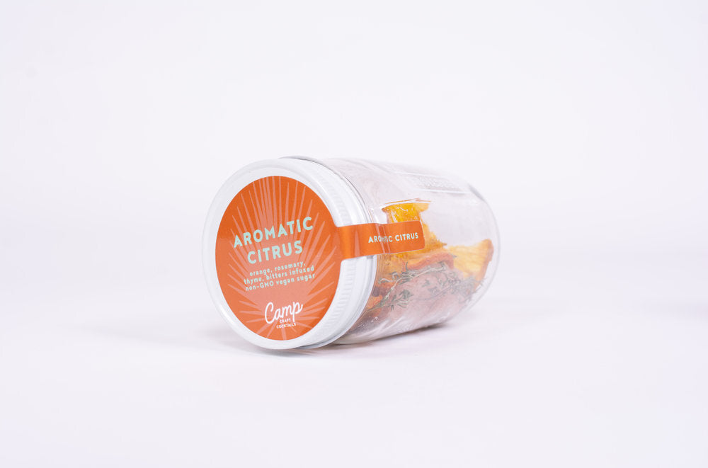 Home bar enthusiasts and gift-givers are passionate about this beautiful and delicious infusion kit containing sweet orange citrus, rosemary, thyme, & bitters-infused vegan non-GMO cane sugar.