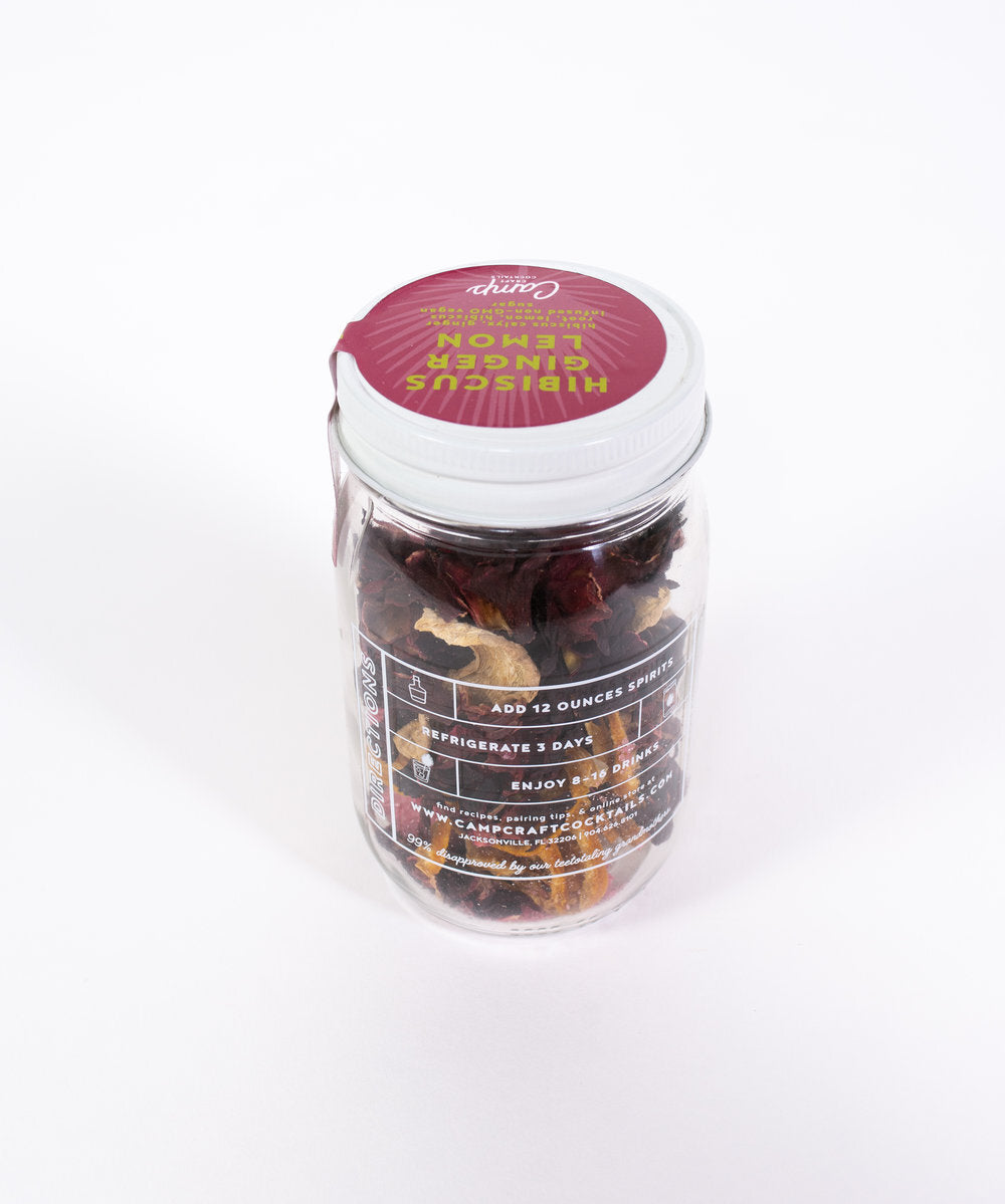 Home bar enthusiasts and gift-givers are devoted to this beautiful and delicious infusion kit containing hibiscus calyx, ginger root, lemon, and hibiscus-infused vegan non-GMO cane sugar.