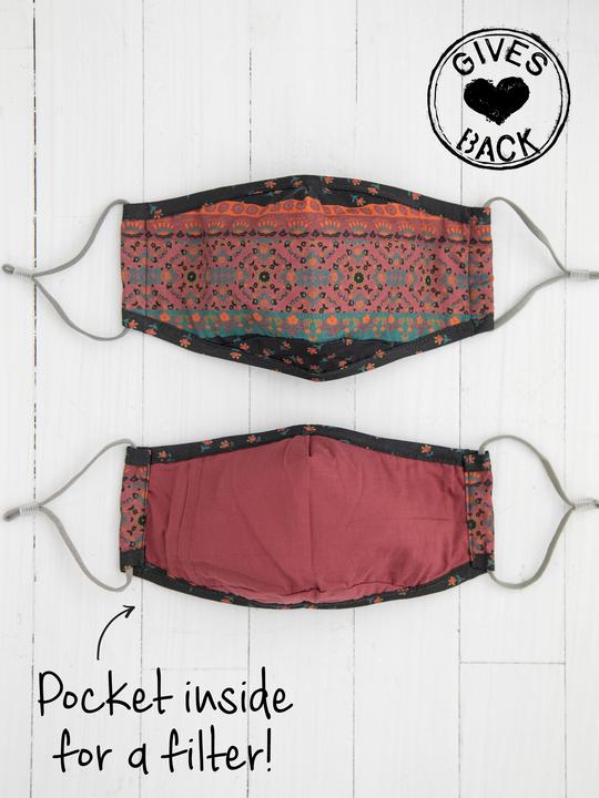 - Double-layer face mask features: linen blend outside and soft cotton lining, over-the-ear elastic, clear silicone bead on ear straps for an adjustable fit, inner pocket for a filter, nose wire for a contoured fit, and chin gusset. Filters not included.