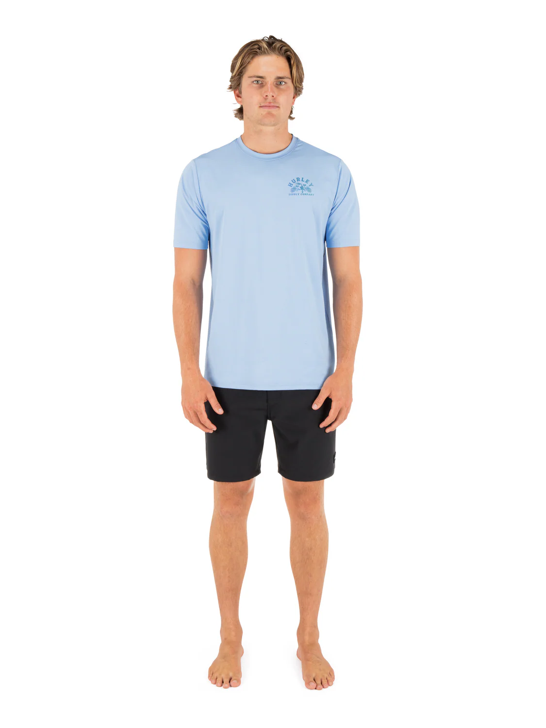 The Hybrid UPF short sleeve delivers lightweight protection built for land or sea. Made from 190gsm jersey knit with Repreve® fibers, it offers UPF 50+ sun protection and hybrid versatility for in or out of the water. Finished with screen print graphics and a One & Only clip label for a clean finish.