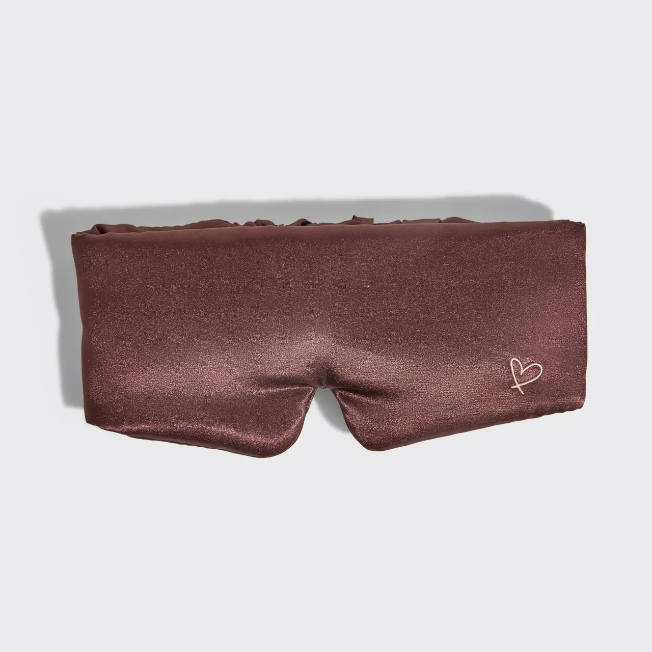 Set includes: Satin Pillowcase Standard - Blush Satin, Pillow Scrunchie - Blush Satin, Pillow Eye Mask - Chocolate