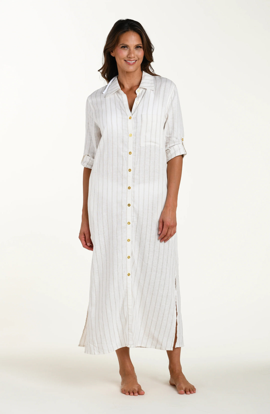 La Blanca Delphine Coast Linen Button Up Shirt Dress