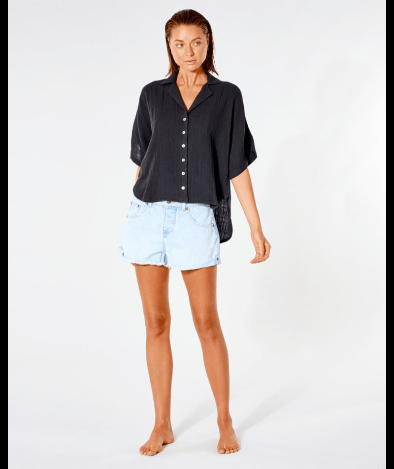 Dress in casual style with the Premium Surf Shirt Sleeve Shirt. Made from cotton double weave gauze fabric, this relaxed fit shirt offers both comfort and versatility. The garment wash adds a soft and worn-in feel, while the button-through design allows for easy on and off. Whether you're heading to the beach or running errands, this shirt is a stylish choice for a laid-back look.