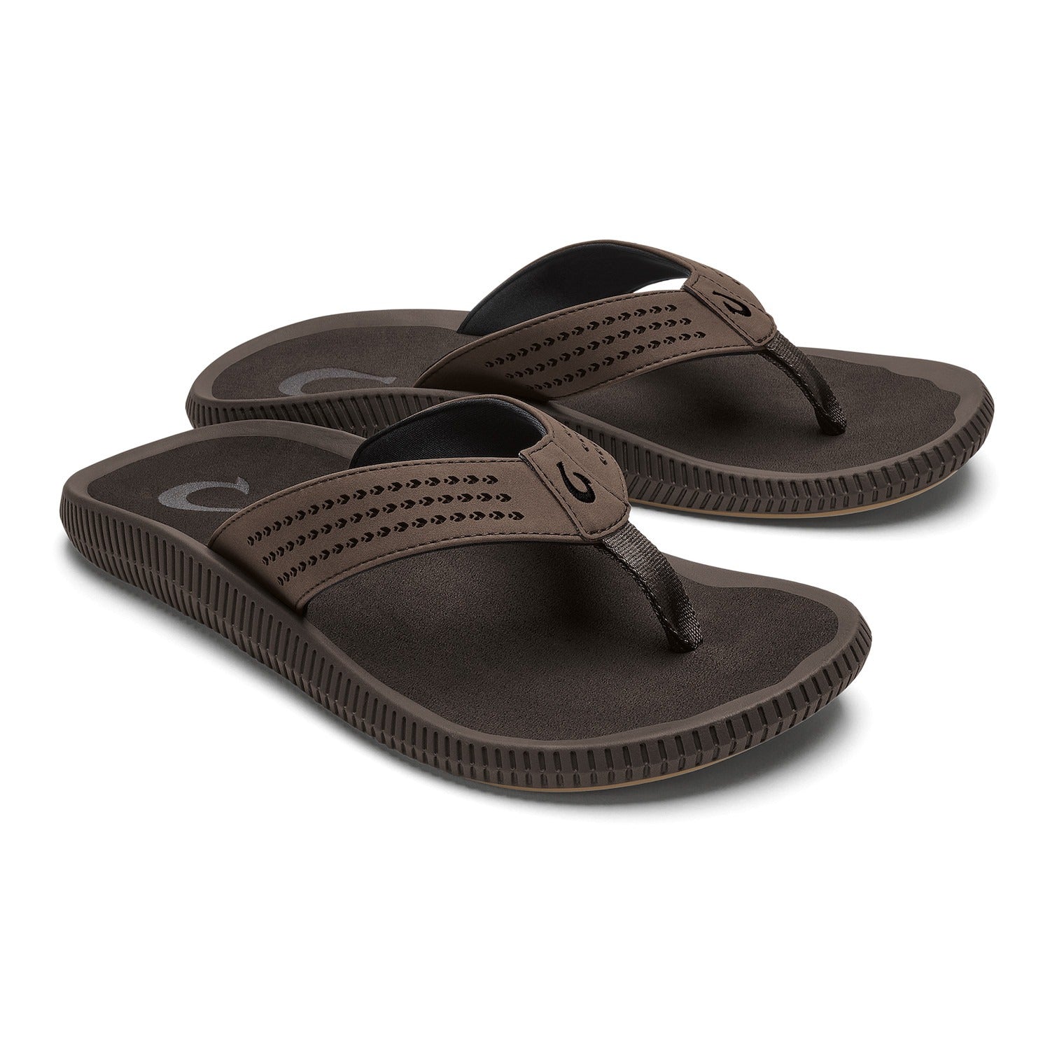 OluKai Craftsmanship: Features Kalo plant-inspired laser-cut upper straps and an embroidered hook logo.