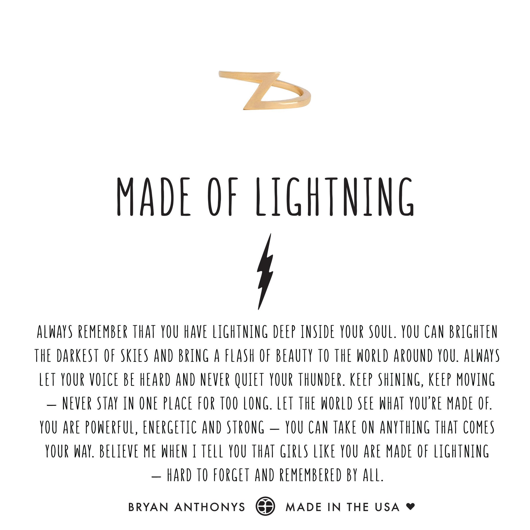 Always remember that you have lightning deep inside your soul. You can brighten the darkest of skies and bring a flash of beauty to the world around you. Always let your voice be heard and never quiet your thunder. Keep shining, keep moving — never stay in one place for too long. Let the world see what you're made of. You are powerful, energetic and strong — you can take on anything that comes your way. Believe me when I tell you that girls like you are made of lightning — hard to forget and remembered by all.