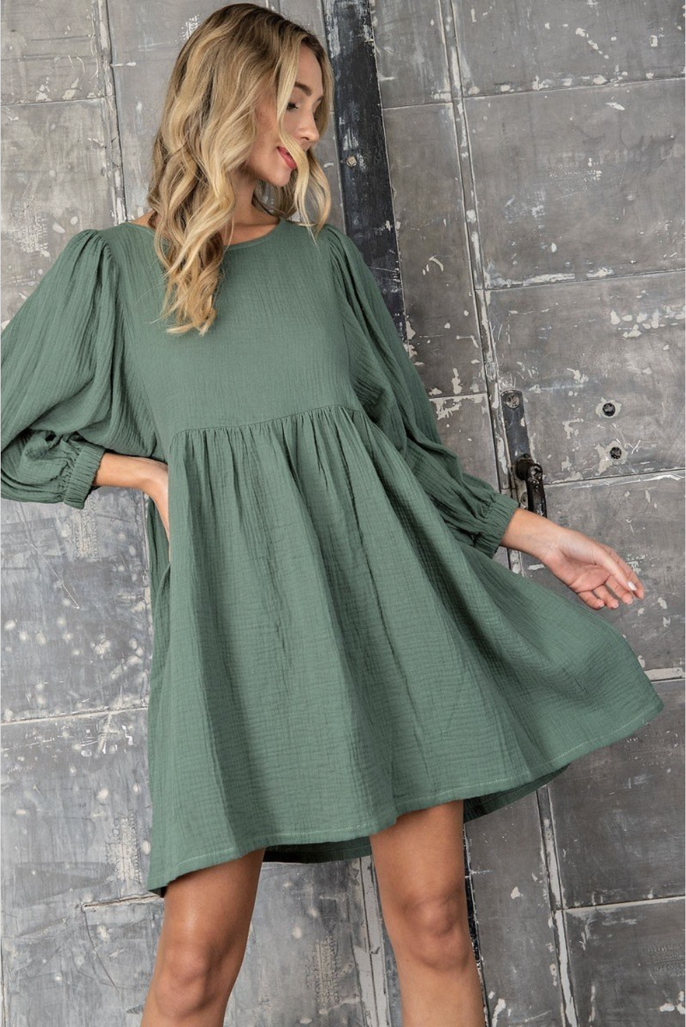 Natalie Long Sleeve Babydoll Dress - Womens Casual Dresses - Big Sun Vernon