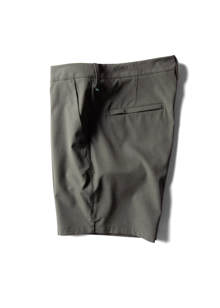 Our classic hybrid with a shorter leg. 4 -Way stretch quick dry textured fabric with recycled poly Repreve. Style features back pockets with zipped closure on wearers left. Side slash pockets with mesh lining. Chambray lined waistband with center front button closure and locking coil zipper at fly.